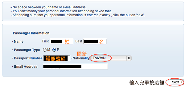 如果兩個都是綠色的話,請開開心心的各點一下之後,在下面輸入個人資料,並且按下Next。