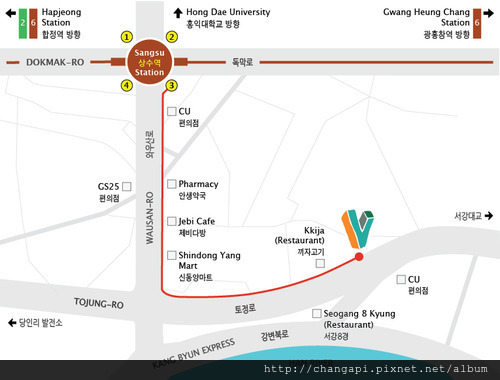 雖然離弘大、合井商圈不是太遠,輕鬆的散步大約15-20分鐘,