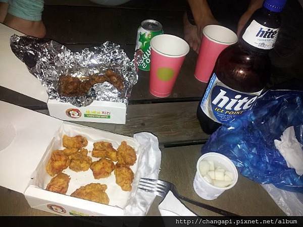 享用著啤酒、炸雞還有十分涼爽的夏日晚風。
