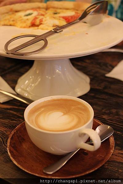 店裡提供各類的咖啡與茶類飲品外,也供應著Pizza與麵食類的餐點,