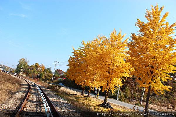 其中,最喜歡的照片,就是開頭那張鐵路旁幾棵閃耀著金黃的銀杏樹,