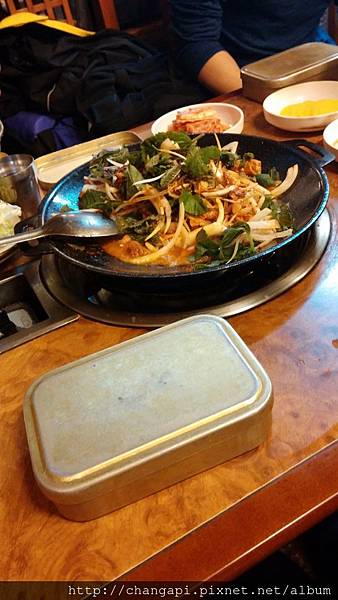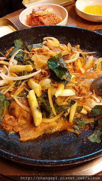 這間잔등재(發音接近:強登姐)賣的是두루치기(應該是翻作炒五花豬肉鍋吧!)