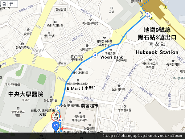 請搭乘地鐵9號線到黑石站Hukseouk Station(흑석역)