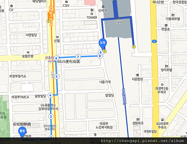 3.到了議政府市廳站之後,從2號出口出來直行就會到了。