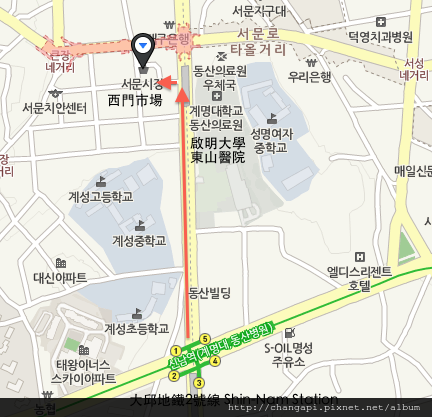 西門市場目前最臨近的地鐵站就是2號線的Shin-Nam站,