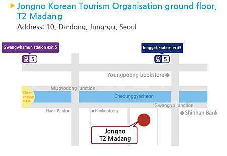 鐘路觀光公社T2廣場:近1號線鐘閣站5號出口,或5號線光化門站5號出口