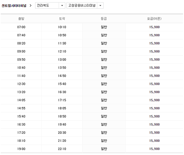 搭乘客運至高昌巴士站(고창공용버스터미널),時間約3小時10分,費用15,900元