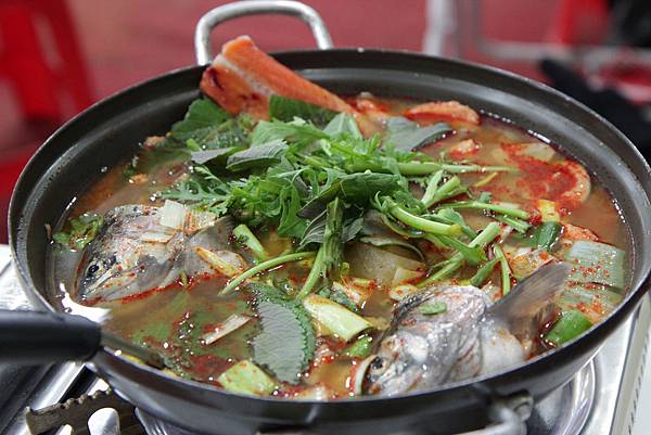 辣湯裡就滿簡單的,剔下來的骨頭、魚頭還有一些蔬菜,