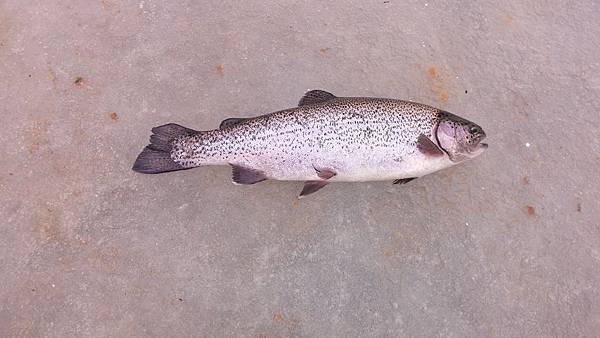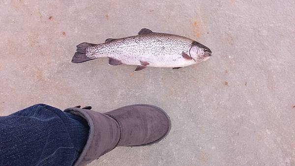 你看看~我旁邊的阿伯釣到的櫻鱒多肥美,