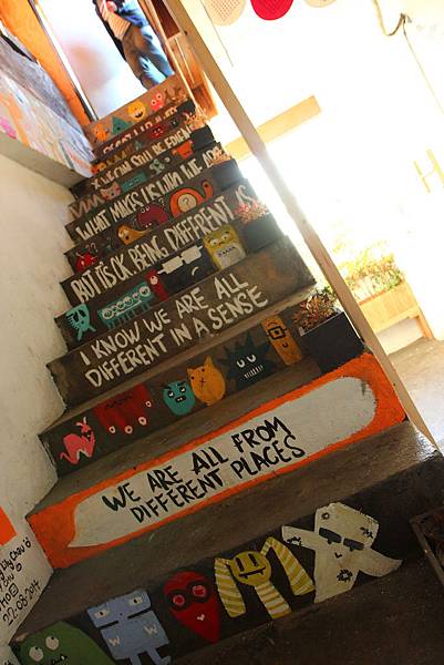 繽紛的階梯上寫滿了關於「不一樣」的語句,