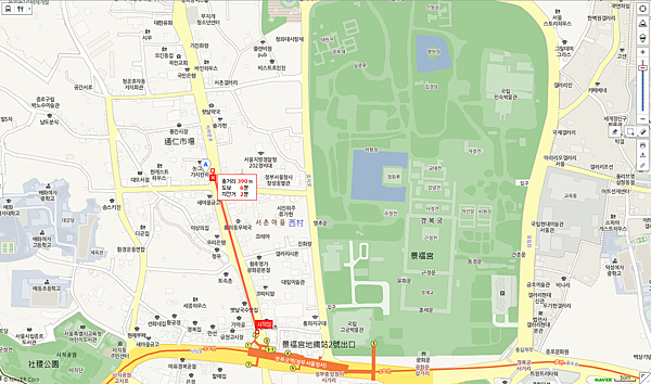 地鐵3號線景福宮站2號出口往通仁市場的方向直行約400公尺即可到達,
