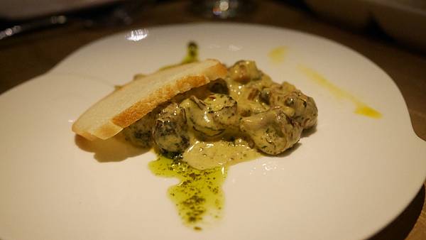入口之後,香氣在口中散開,淡淡的酸與蒜與奶香、香料完美的調和,