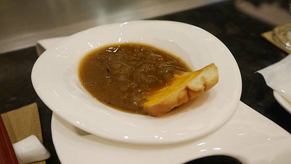接下來是湯品,分別有法式洋蔥湯與絲瓜濃湯