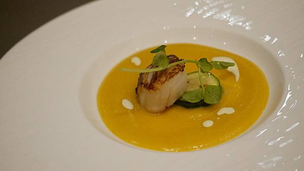 干貝佐南瓜醬,師傅說餐廳是採用可以「生食」等級的干貝,
