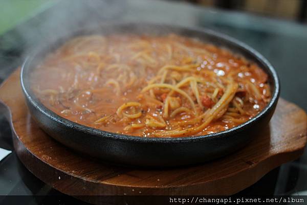 他們把義大利麵放在石鍋裡,因此送上來時醬汁仍舊非常滾燙。