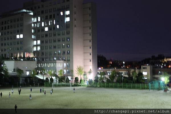 操場的石階梯,搭配著遠方的夜景,還有運動的男孩們~