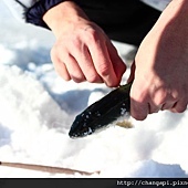 我心想,剛剛已經沒釣到魚了,站在這裡也是冷死,冷死前也要吃一條魚(下定決心)